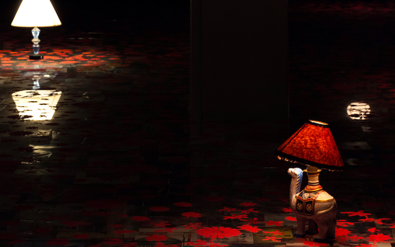 自古以來,圓即用於象徵永久或完滿之物;各式各樣的圓,孕育種種宇宙性的空間。光線照射後於幽暗裡浮現的紅色圓形「彼方」,不僅是將平常未能見得的生命活動奇蹟似地予以視覺化,更作為串連時間或記憶之窗而顯現。大卷伸嗣利用迄今於世界各地蒐羅的各式圖騰紋樣,揉合多種文化,以理想世界的攫取勾勒, 來構成展示空間。自黑暗之中,凝望以礦物顏料所描繪的窗景 「彼方」,超越時空,窺視那些編織至今和現下正逐漸消逝的故事,甚至從今而後即將誕生的故事。