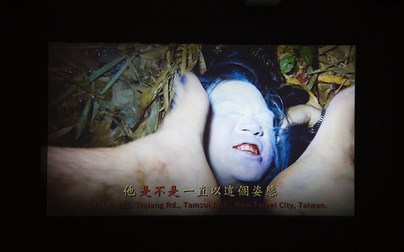 此件作品運用多重的現成文本混雜藝術家編纂 的文集,轉化為錄像中角色背誦的獨白稿。原來可清楚辨識的內容,透過參與者 ( 持攝影機的人 ) 對鏡頭內的表演者 ( 即作者 ) 即興的踩踏動作,讓獨白的過 程在施虐過程進入噤聲、錯亂、瘋狂等狀態,語言在意識與無意識間產生錯位,以逼近語言結構的邊緣。 拼貼文本中以顏色區別的文本,分別為作者惹內與尼采死後逸散的文稿〈小偷日記〉及〈權利意 志—下卷〉。