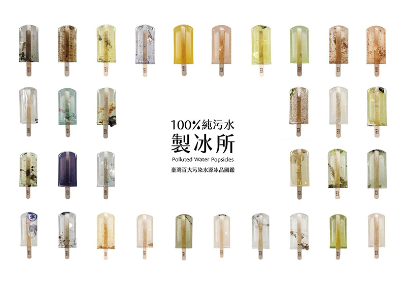 取自臺灣100個污染水源地的水後,將其製成冰棒,再復刻成1:1的poly模型做展示,透過美麗包裝及內容物的衝擊感來傳達純淨水的重要,最後以圖鑑來呈現真實樣貌。這麼美的冰棒,你敢吃嗎?