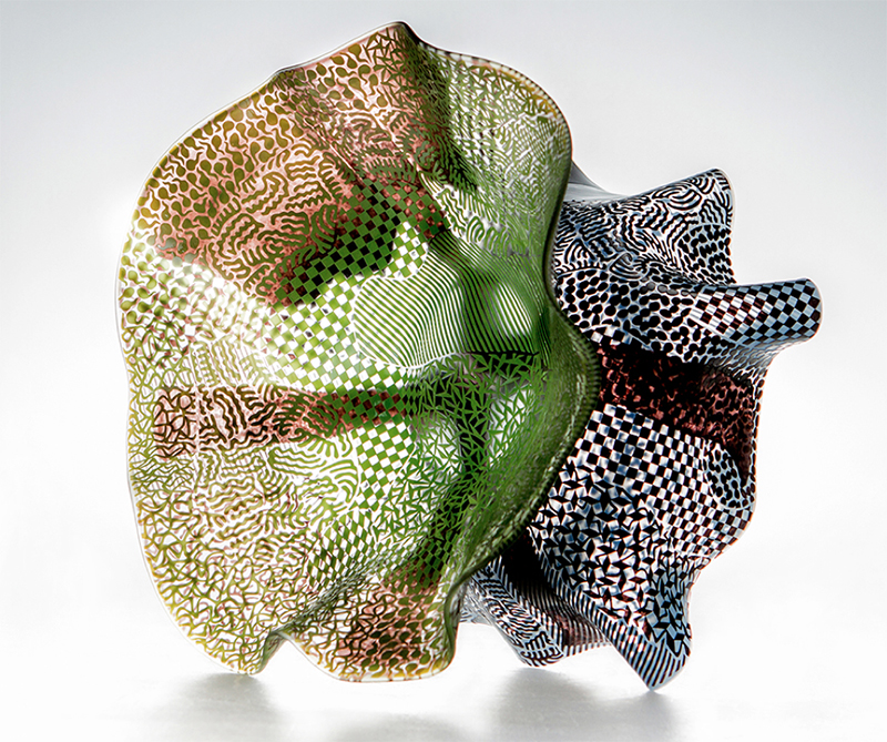 人與人之間的相處,就像高溫流動中的玻璃般,隨時隨地都在改變,我們透過耐心地修飾與適時放任其流動,探索維繫關係平衡的節奏。使用充滿感性與理性象徵的符號性圖騰,任其隨處擴張,藉由美感經驗的投射,構築出心中理想的藍圖,使心靈獲得紓解。反映在兩人相處的關係裡,我們尋覓著專屬彼此最幽美的姿態。