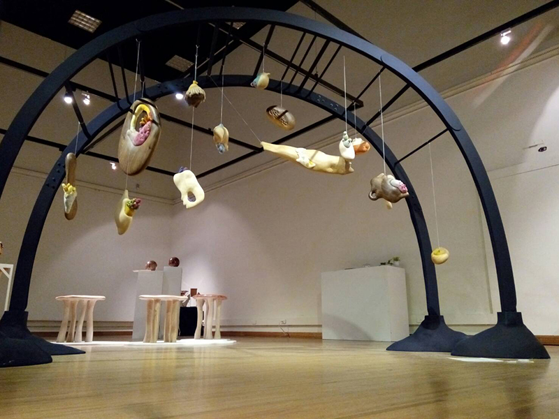 把自己縮小,走進海裡,找到自己最適合的所在,無論被什麼淹沒都能堅決的在那大口呼吸,被海包圍,放鬆浮沉。以羊毛氈結合木材,試著用硬的木材表現柔軟的曲線,像在流動,有生命的,並以羊毛氈的色彩和柔軟感結合或包覆,創造一個沉靜的水下空間。