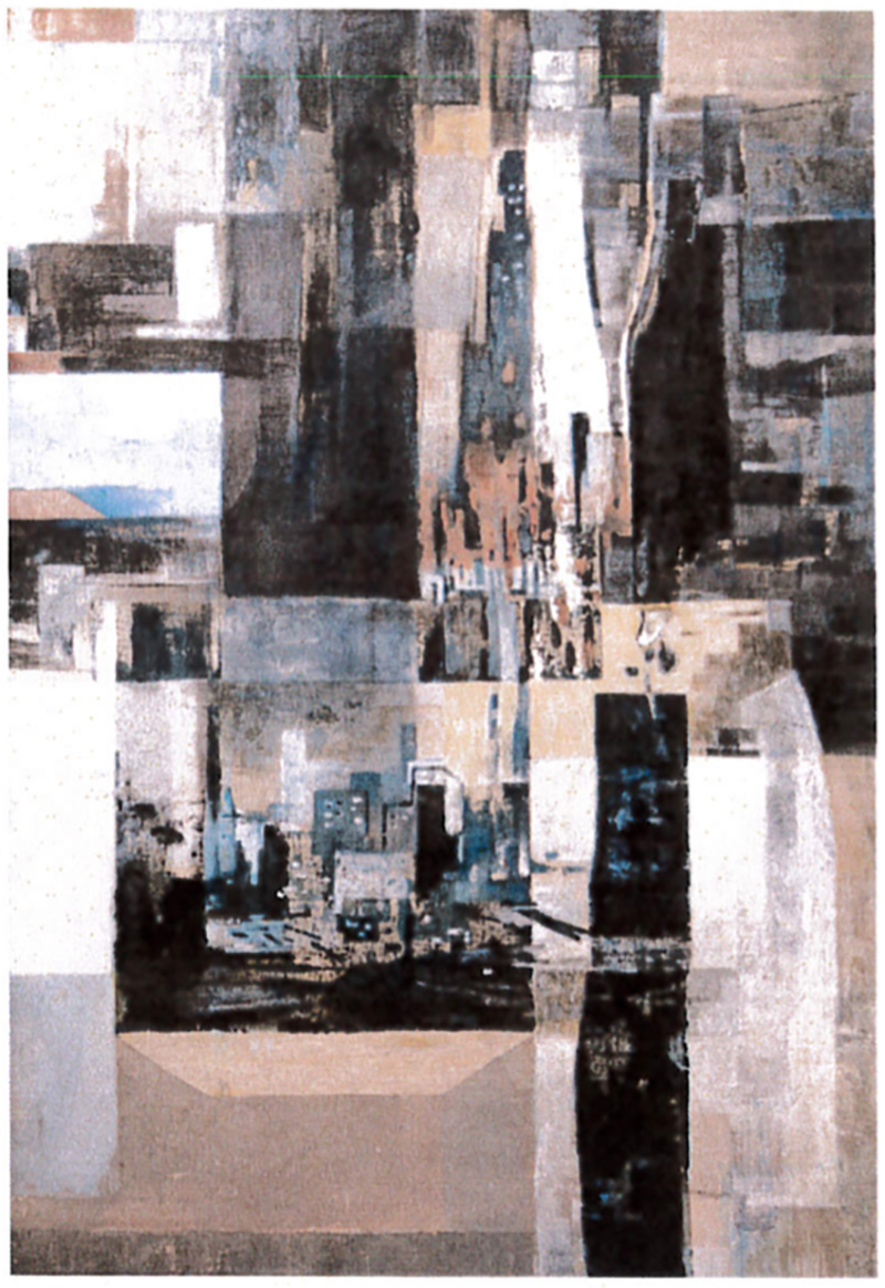 作品發展分為兩個領域;第一個領域為幾何抽象,使用最基礎的以水平、垂直、斜線等造形元素,創作出繪畫平面空間深遠、淺平、平面的視覺幻象,呈現與印證現代藝術繪畫空間的,探索抽象藝術的精神性;第二個領域加入符號與可辨識的造形,作品中有一棵孤單的樹,象徵都市的人們心靈孤單的心理狀態;都市符號的介入破壞了色塊的平面性,讓原本平面穩定的空間構成,呈現不安定、不穩定的視覺效果,平面色塊象徵著人心裡狀態的和諧,繪畫性筆觸的都市符號暗示著人們潛意識不安的心靈狀態。