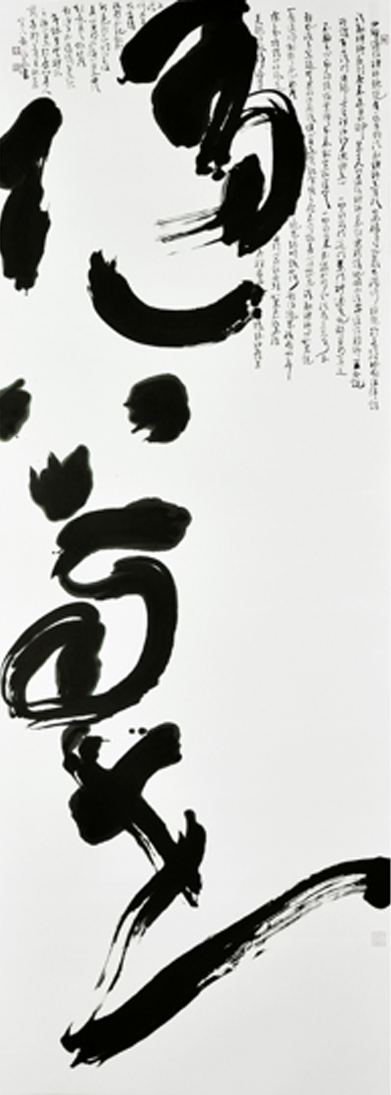 創作者藉由線條、墨量、開闔彰顯空間佈白能力,在恣意的書寫下,了表內心之情感。